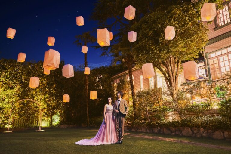 季節の移ろいを感じる桜、木蓮、金木犀、街にいることを忘れてしまうほど生い茂る緑の木々と優しい光に包まれるガーデンセレモニー。歴史を感じる厳かで重厚感のある唯一無二のアンティークチャペル。
